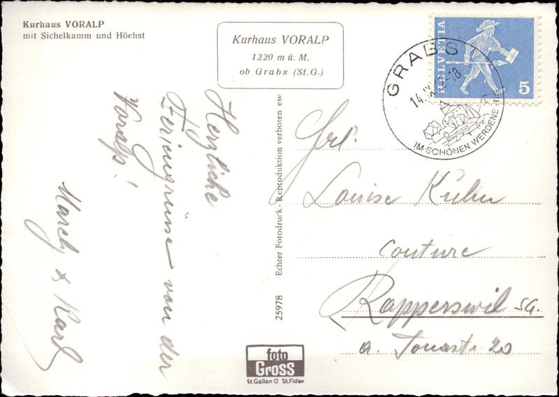 Zustandsbeschreibung der Ansichtskarte "Kurhaus Voralp, Grabs"