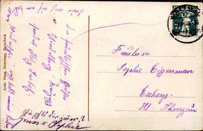 Ecken bestossen, Altersbedingt gebräunt, Ecken geknickt, Stempelflecken auf Vorderseite