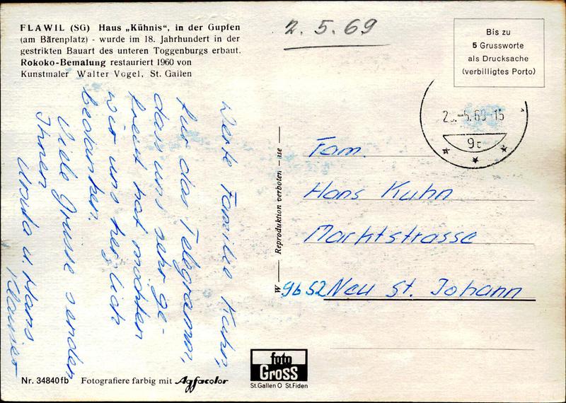 Zustandsbeschreibung der Ansichtskarte "Flawil, Haus "Kühnis" in der Gupfen."
