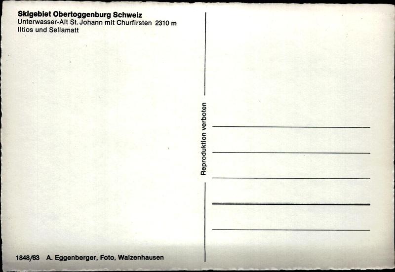 Zustandsbeschreibung der Ansichtskarte "Unterwasser-Alt St.Johann mit Churfirsten Iltios und Sellamatt"