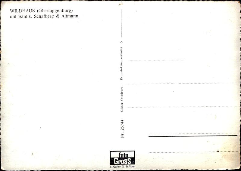 Zustandsbeschreibung der Ansichtskarte "Wildhaus mit Säntis, Schafberg & Altmann"