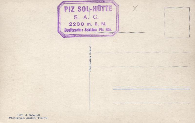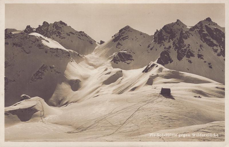 Zustandsbeschreibung der Ansichtskarte "Piz - Sol Hütte gegen Wildseelücke"