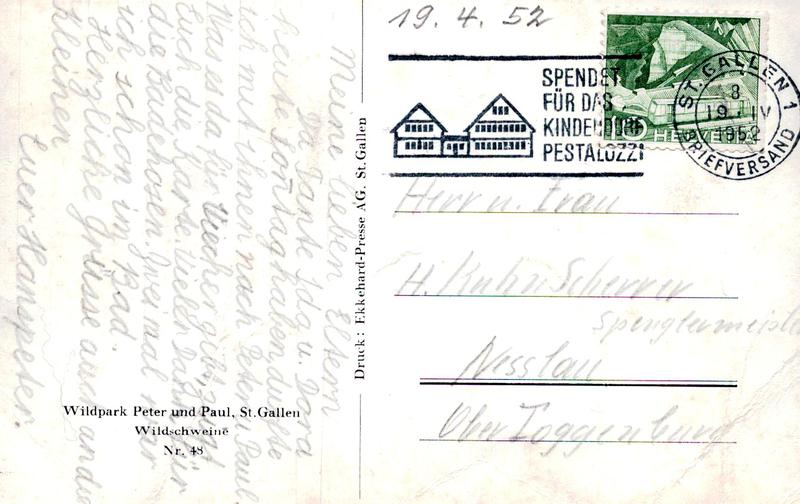 Zustandsbeschreibung der Ansichtskarte "Wildpark Peter und Paul St.Gallen, Wildschweine"