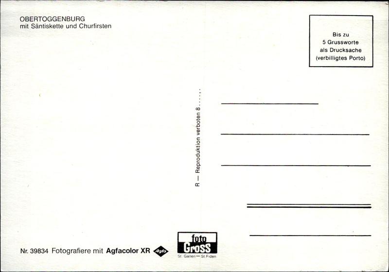 Zustandsbeschreibung der Ansichtskarte "Obertoggenburg/mit Säntiskette und Churfirsten"