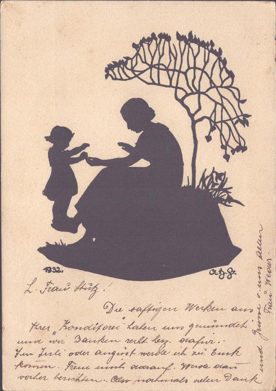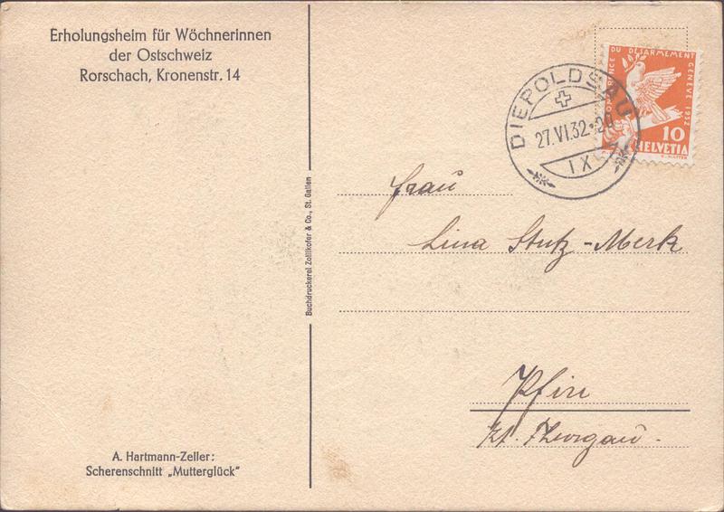Scherenschnittkarte, Erholungsheim für Wöchnerinnen, Rorschach. 1912