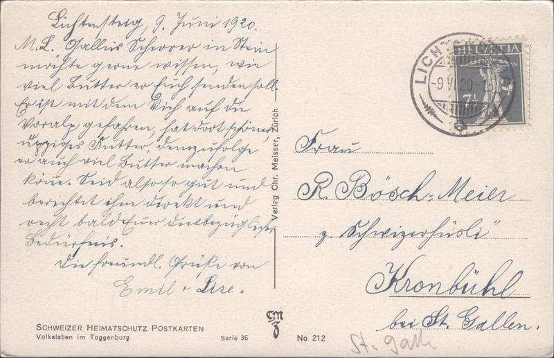 Zustandsbeschreibung der Ansichtskarte "Volksleben im Toggenburg"