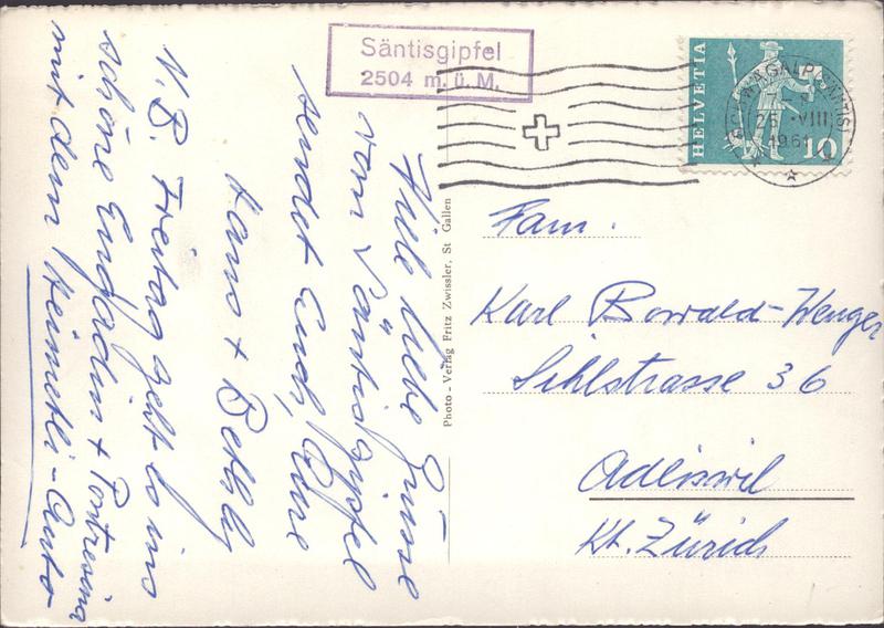 Zustandsbeschreibung der Ansichtskarte "Blick vom Fählenturm auf die Säntiskette"