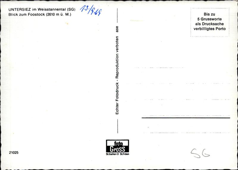 Zustandsbeschreibung der Ansichtskarte "Untersiez mit Weisstannental"