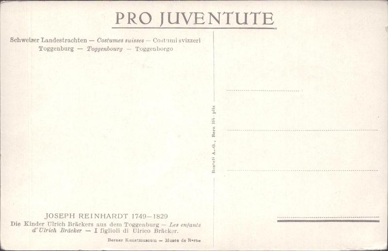 Zustandsbeschreibung der Ansichtskarte "Die Kinder Ulrich Bräckers, Joseph Reinhardt, Pro Juventute"