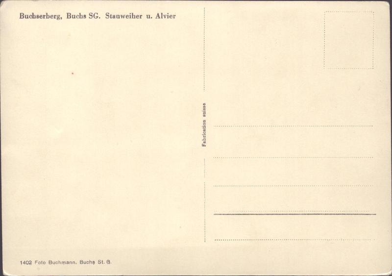 Zustandsbeschreibung der Ansichtskarte "Buchs SG, Buchserberg, Stauweiher und Alvier"