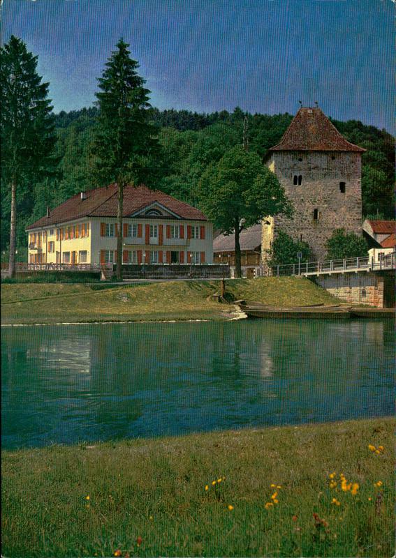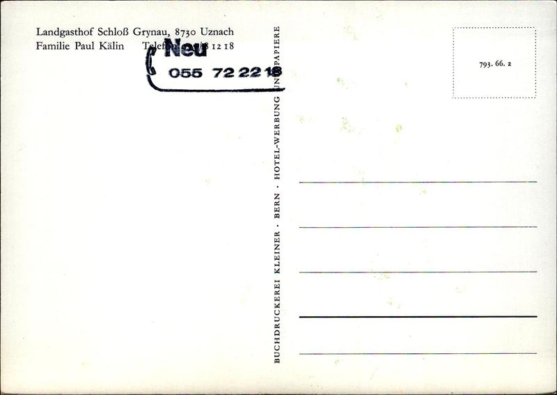 Zustandsbeschreibung der Ansichtskarte "Uznach, Landgasthof Schloss Grynau"