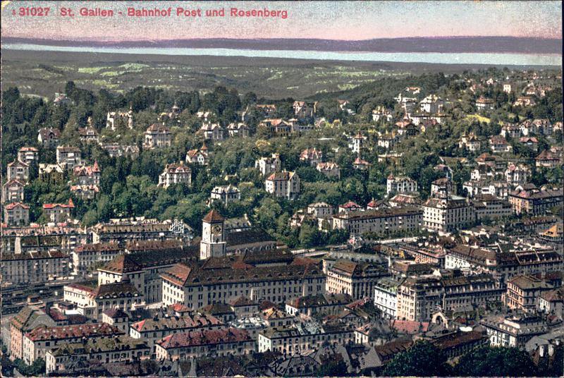 Zustandsbeschreibung der Ansichtskarte "St. Gallen, Bahnhof Post und Rosenberg"
