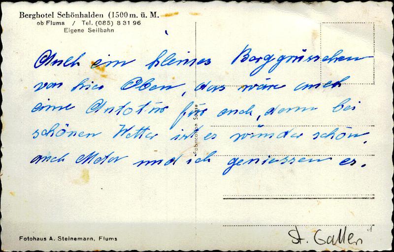 Zustandsbeschreibung der Ansichtskarte "Flums, Berghotel Schönhalden"