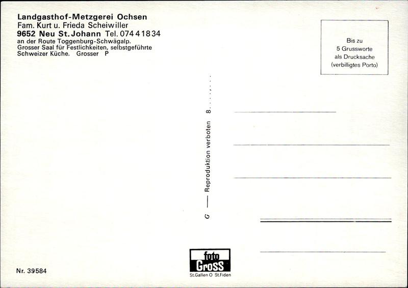 Vorschau: Neu St. Johann, Landgasthof-Metzgerei Ochsen Vorderseite Vorschau: Neu St. Johann, Landgasthof-Metzgerei Ochsen Rückseite