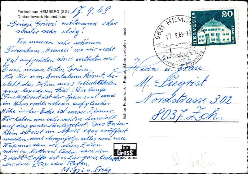 Zustandsbeschreibung der Ansichtskarte "Ferienhaus Hemberg (SG), Diakoniewerk Neumünster"