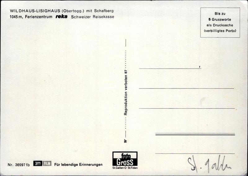 Zustandsbeschreibung der Ansichtskarte "Wildhaus-Lisighaus mit Schafberg, Ferienzentrum Schweizer Reisekasse"