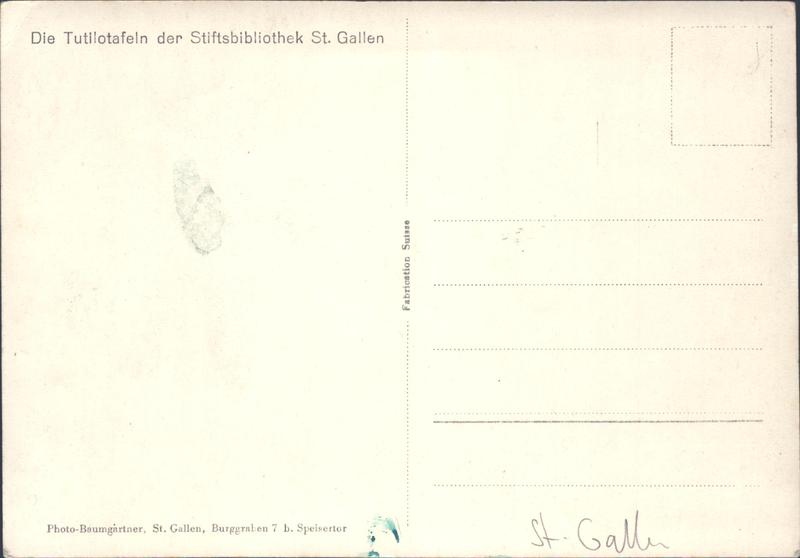 Zustandsbeschreibung der Ansichtskarte "Stiftsbibliothek St. Gallen, die Tutilotafeln"