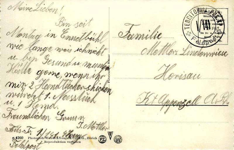 Zustandsbeschreibung der Ansichtskarte "Ennetbühl mit Säntis"
