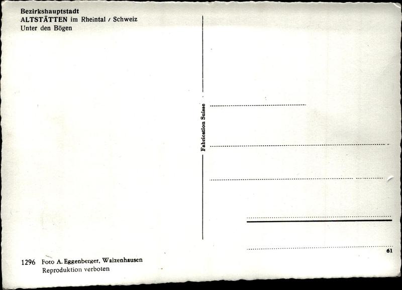 Zustandsbeschreibung der Ansichtskarte "Altstätten, unter den Bögen"