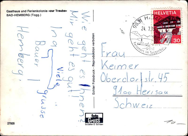 Zustandsbeschreibung der Ansichtskarte "Bad-Hemberg, Gasthaus und Ferienkolonie "Zur Traube""