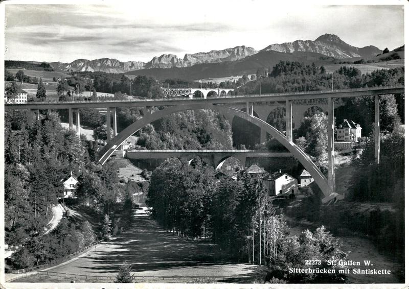 Zustandsbeschreibung der Ansichtskarte "St. Gallen, Sitterbrücken mit Säntiskette"