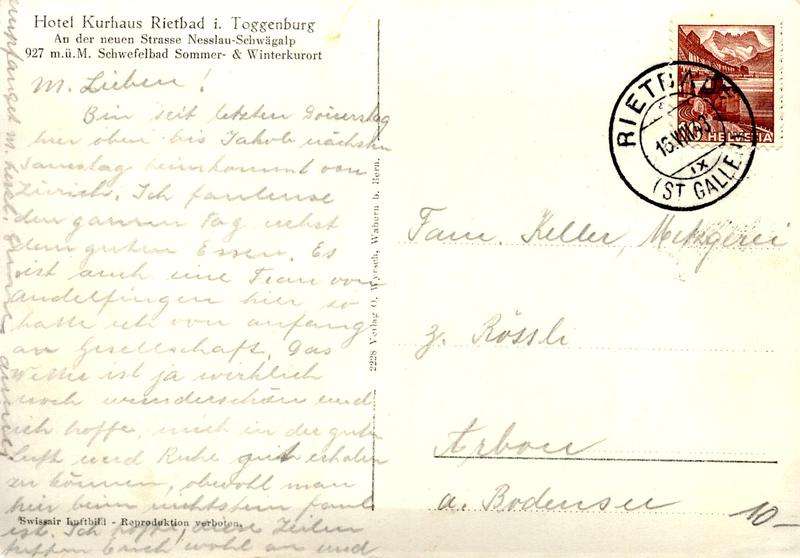 Zustandsbeschreibung der Ansichtskarte "Rietbad, Hotel Kurhaus"
