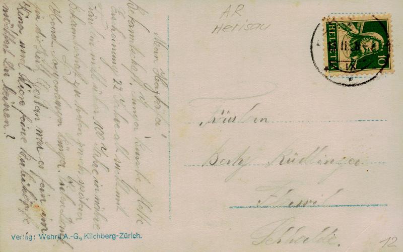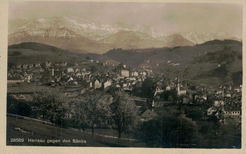 Zustandsbeschreibung der Ansichtskarte "Herisau gegen den Säntis"