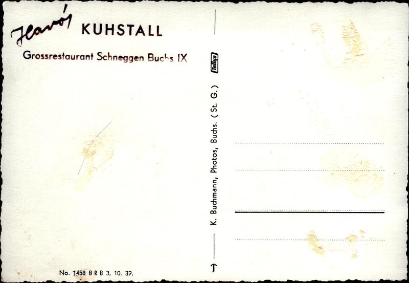 Zustandsbeschreibung der Ansichtskarte "Buchs SG, Rest. Schneggen"