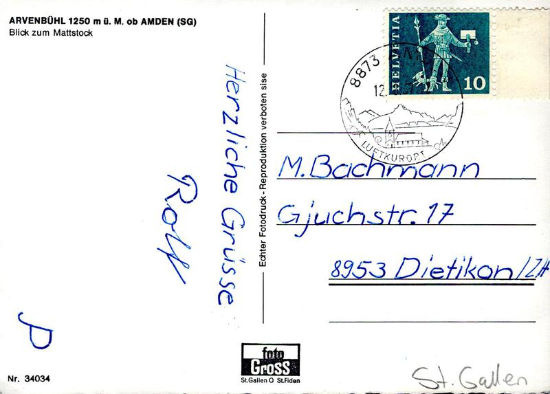 Zustandsbeschreibung der Ansichtskarte "Arvenbühl ob Amden, Blick zum Mattstock"