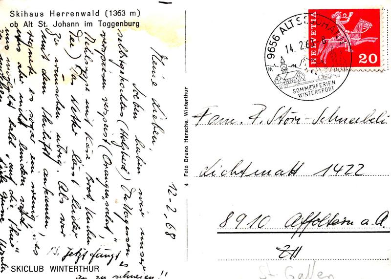 Zustandsbeschreibung der Ansichtskarte "Skihaus Herrenwald ob Alt St. Johann im Toggenburg"