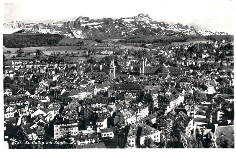 Zustandsbeschreibung der Ansichtskarte "St. Gallen mit Säntris"