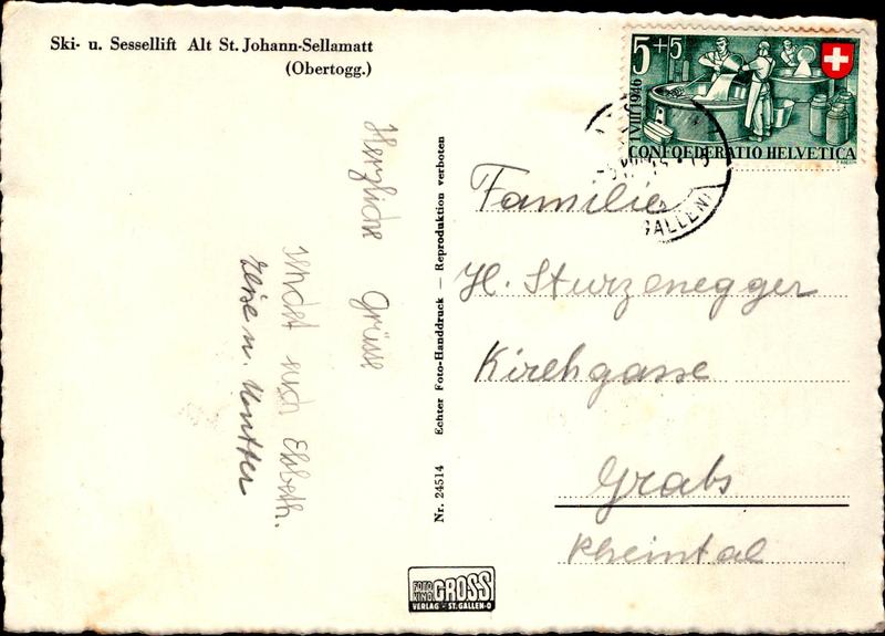 Zustandsbeschreibung der Ansichtskarte "St. Johann-Sellamatt, Ski- und Sessellift"