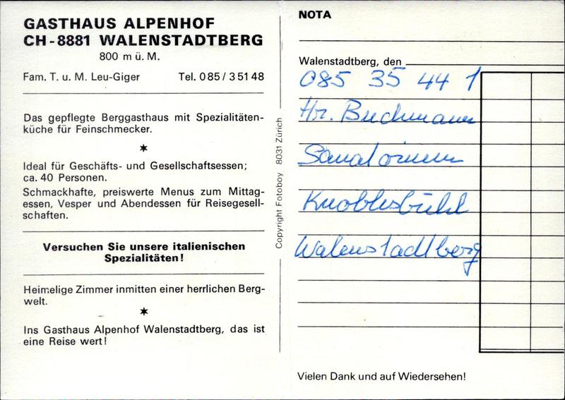 Zustandsbeschreibung der Ansichtskarte "Walenstadtberg, Gasthaus Alpenhof"