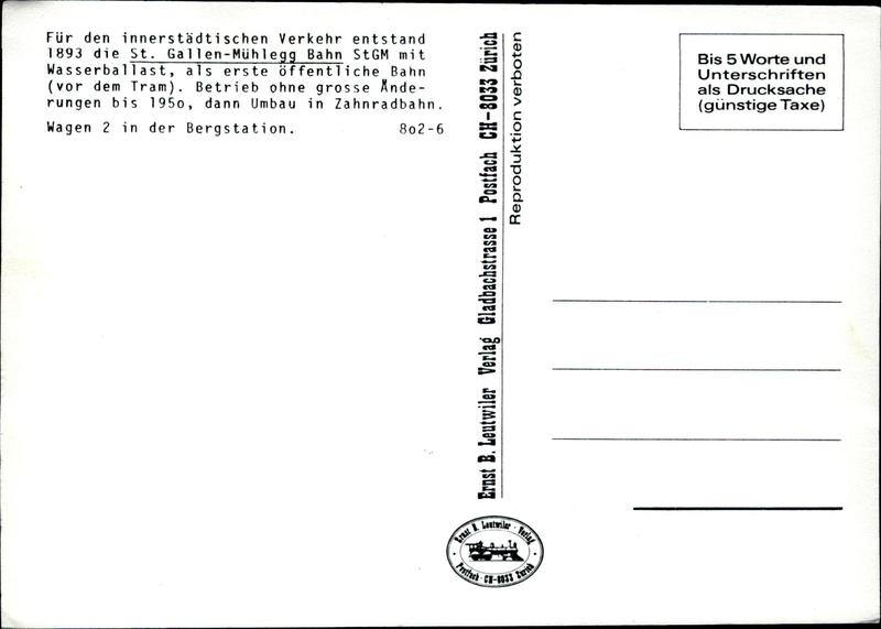 Vorschau: St. Gallen-Mühlegg Bahn Vorderseite Vorschau: St. Gallen-Mühlegg Bahn Rückseite