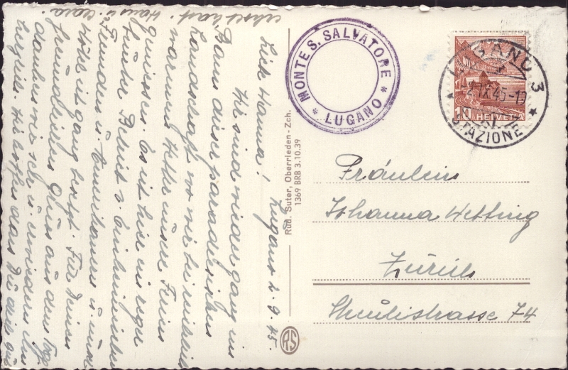 Zustandsbeschreibung der Ansichtskarte "Castagnola - Chiesa e Monte san Salvatore"