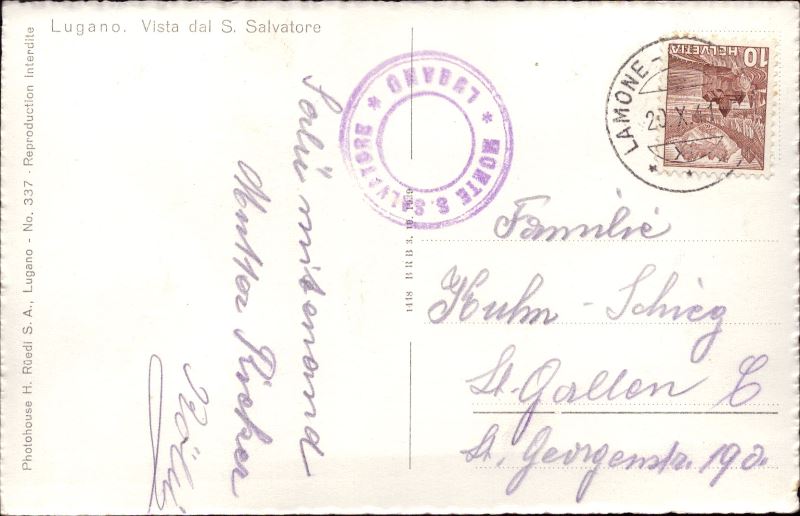Zustandsbeschreibung der Ansichtskarte "Lugano, Vista dal S. Salvatore"
