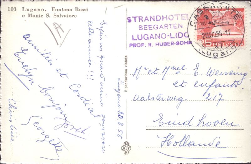 Zustandsbeschreibung der Ansichtskarte "Lugano, Fontana Bossi e monte S.Salvatore"
