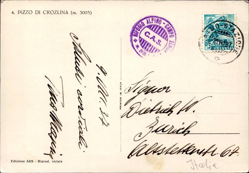 Zustandsbeschreibung der Ansichtskarte "Pizzo di Crozlina"