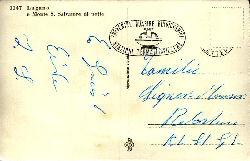 Zustandsbeschreibung der Ansichtskarte "Lugano e Monte S. Salvatore di notte"