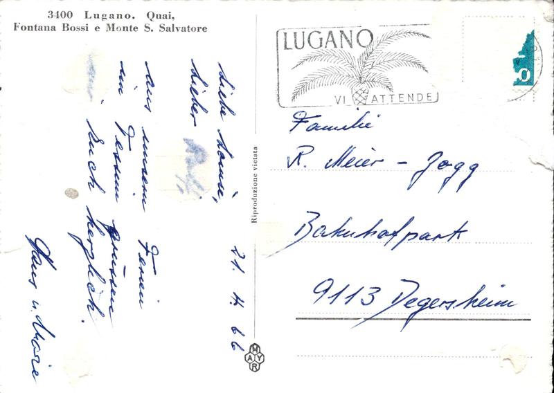 Zustandsbeschreibung der Ansichtskarte "Lugano, Fontana Bossi e monte S.Salvatore"