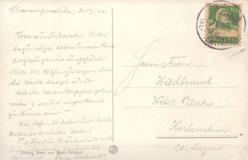 Zustandsbeschreibung der Ansichtskarte "Klausenstrasse - Hotel Klausen-Passhöhe (1838 m)"