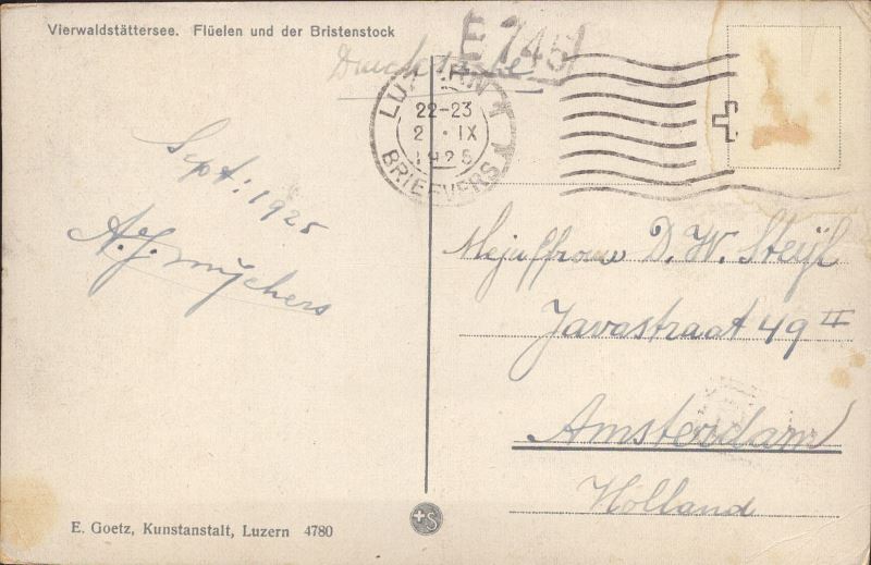 Zustandsbeschreibung der Ansichtskarte "Flüelen und der Bristenstock"