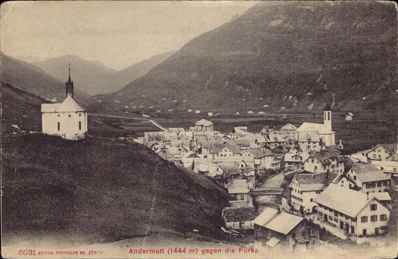 Zustandsbeschreibung der Ansichtskarte "Andermatt gegen die Furka"