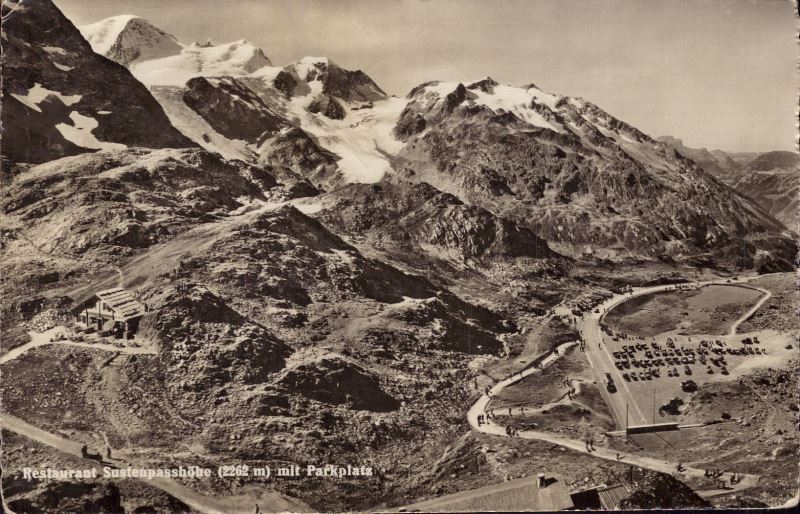 Zustandsbeschreibung der Ansichtskarte "Restaurant Sustenpasshöhe mit Parkplatz"