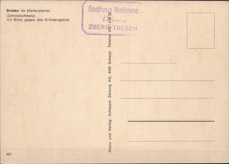 Zustandsbeschreibung der Ansichtskarte "Bristen im Maderanertal mit Blick gegen das Kröntengebiet"
