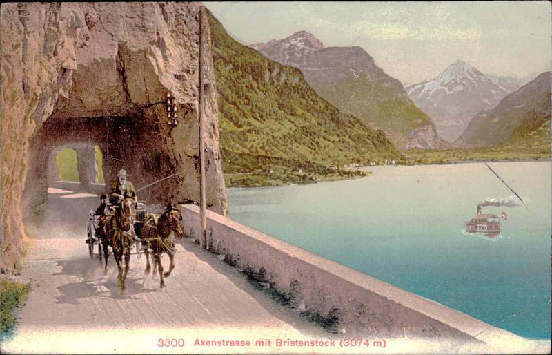 Zustandsbeschreibung der Ansichtskarte "Axenstrasse mit Bristenstovk"