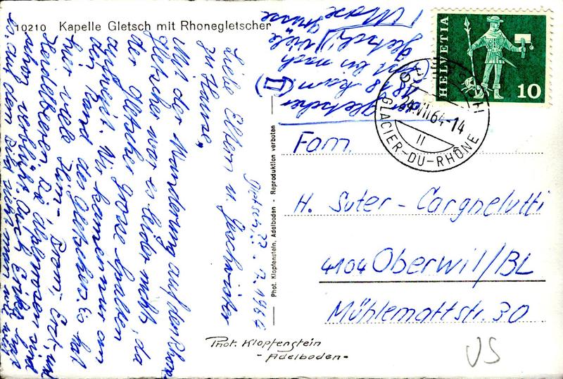 Zustandsbeschreibung der Ansichtskarte "Kapelle Gletsch mit Rhonegletscher"