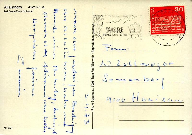 Zustandsbeschreibung der Ansichtskarte "Allalinhorn bei Saas-Fee"
