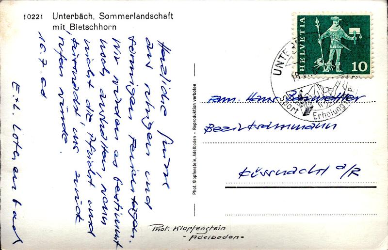 Zustandsbeschreibung der Ansichtskarte "Sommerlandschaft mit Bletschhorn, Unterbäch"