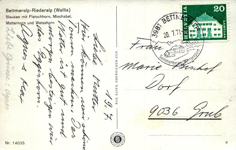 Zustandsbeschreibung der Ansichtskarte "Bettmeralp - Riederalp"